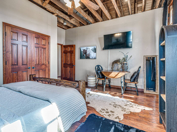 Located in the heart of the OKC Stockyards, this 1 bed, 1 bath apartment blends Western charm with urban style. Exposed brick, wood beams, and bold designer touches create a unique space to relax or entertain. Enjoy your morning coffee on the upstairs balcony or unwind by the firepit on the private patio. Just steps from iconic dining, shopping & the Stockyards action, or a short drive to Bricktown—this retreat puts you right in the middle of it all